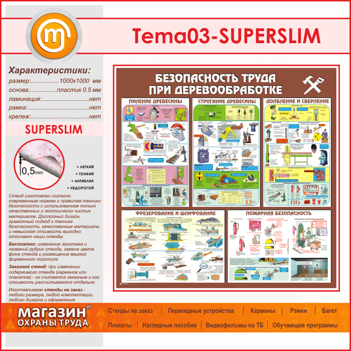 Стенд «Безопасность труда при деревообработке» (TM-03-SUPERSLIM) в Тюмени купить