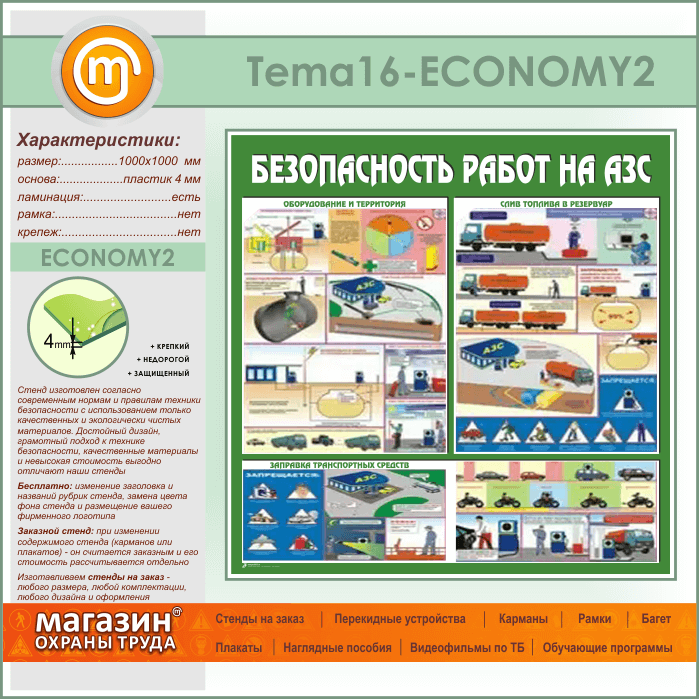 Стенд «Безопасность работ на автозаправочных станциях» (TM-16-ECONOMY2) в Тюмени купить