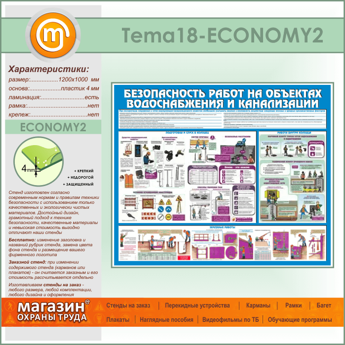 Стенд «Безопасность работ на объектах водоснабжения и канализации» (TM-18-ECONOMY2) в Тюмени купить
