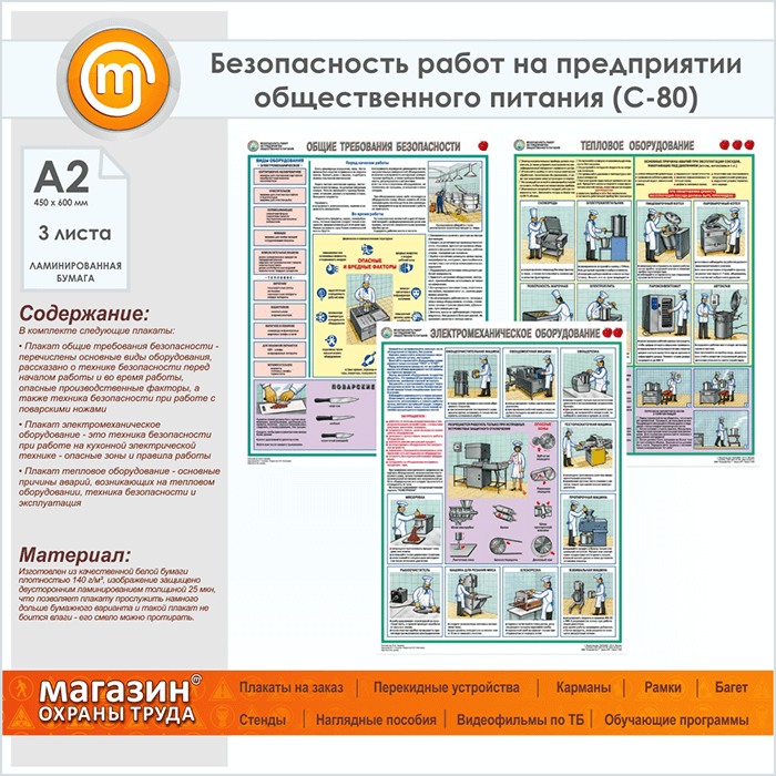 Плакат « Правила охраны труда на предприятии общественного питания» (С-80, ламинированная бумага, А2, 3 листа) в Тюмени купить