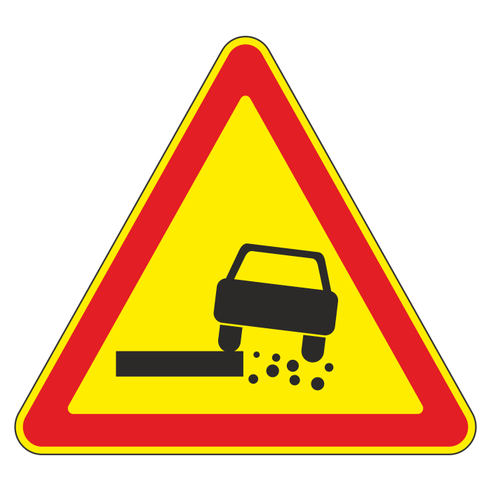 Дорожный знак 1.19 «Опасная обочина» (временный) (металл 0,8 мм, III типоразмер: сторона 1200 мм, С/О пленка: тип А коммерческая) в Тюмени купить