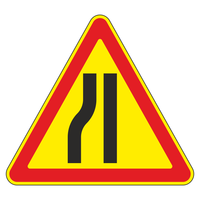 Дорожный знак 1.20.3 «Сужение дороги» (временный) (металл 0,8 мм, I типоразмер: сторона 700 мм, С/О пленка: тип Б высокоинтенсивная) в Тюмени купить