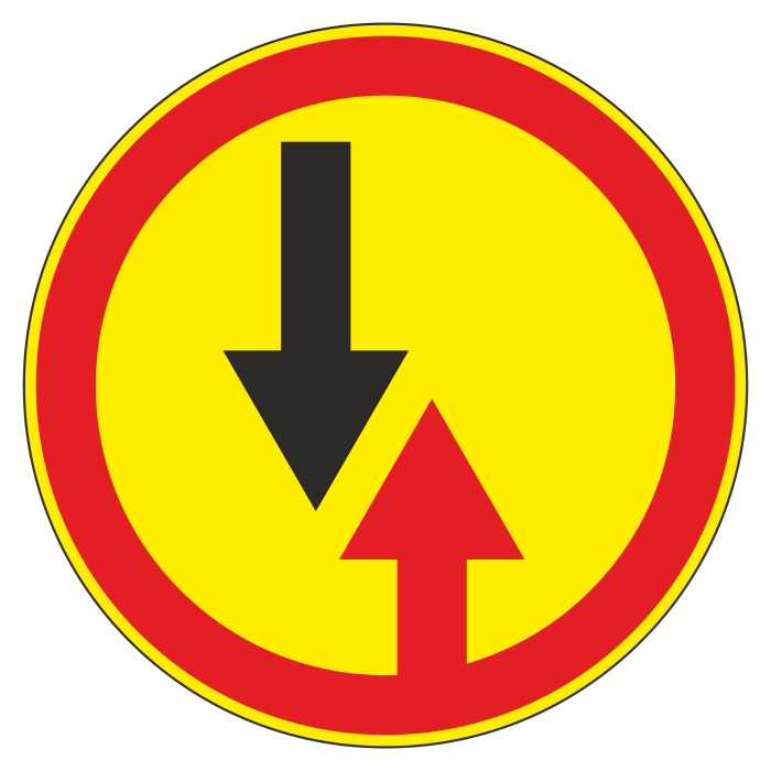 Дорожный знак 2.6 «Преимущество встречного движения» (временный) (металл 0,8 мм, I типоразмер: диаметр 600 мм, С/О пленка: тип В алмазная) в Тюмени купить