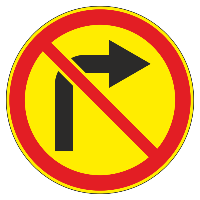 Дорожный знак 3.18.1 «Поворот направо запрещен» (временный) (металл 0,8 мм, III типоразмер: диаметр 900 мм, С/О пленка: тип А инженерная) в Тюмени купить