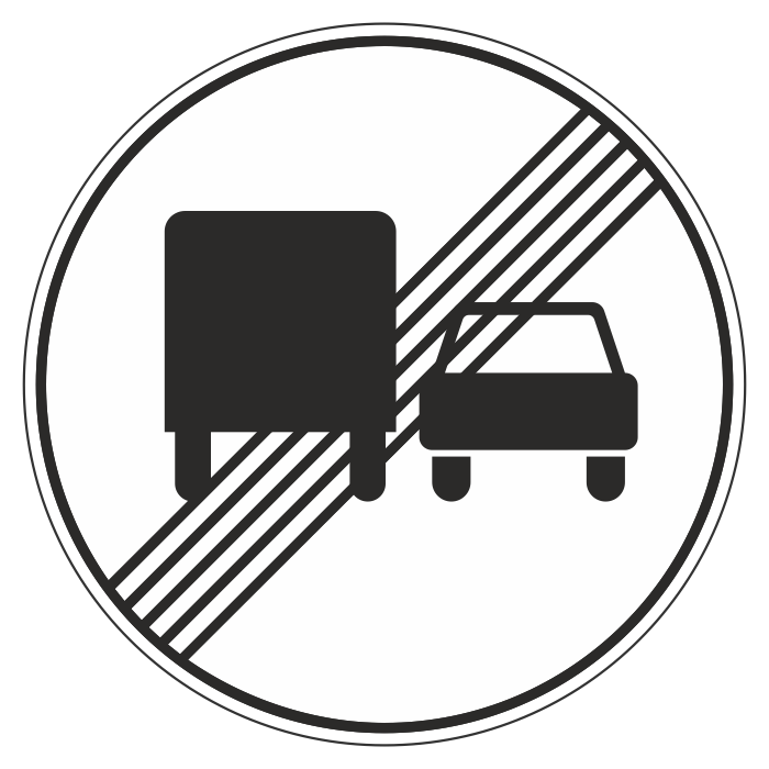 Дорожный знак 3.23 «Конец зоны запрещения обгона грузовым автомобилям» (металл 0,8 мм, II типоразмер: диаметр 700 мм, С/О пленка: тип В алмазная) в Тюмени купить