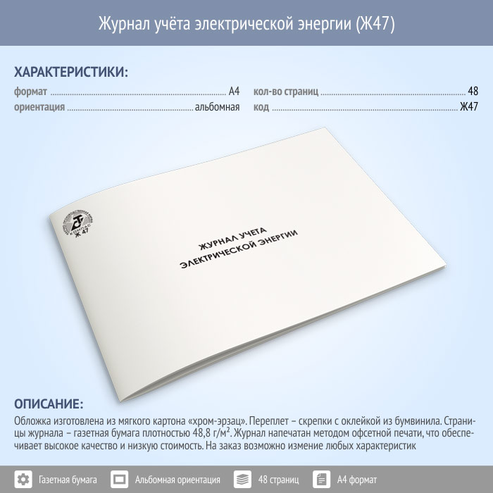 Журнал учета электрической энергии (48 стр., Ж47)