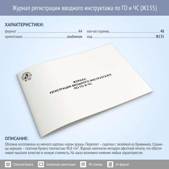 Журнал регистрации вводного инструктажа по ГО и ЧС (48 стр., Ж135) в Тюмени купить