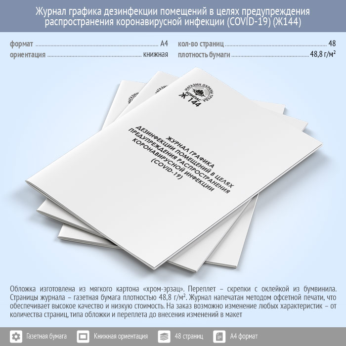 Журнал графика дезинфекции помещений в целях предупреждения распространения коронавирусной инфекции (COVID-19) (48 стр., Ж144) в Тюмени купить