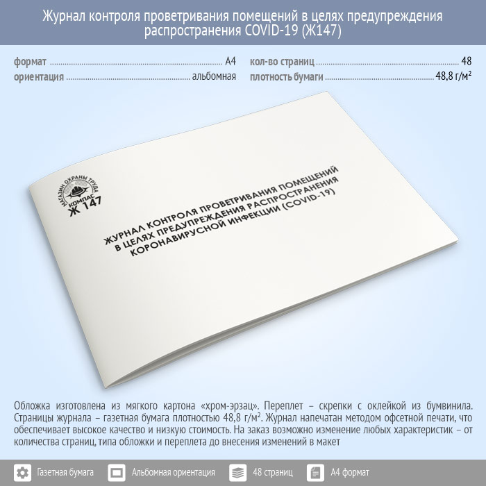 Журнал контроля проветривания помещений в целях предупреждения распространения коронавирусной инфекции (COVID-19) (48 стр., Ж147) в Тюмени купить