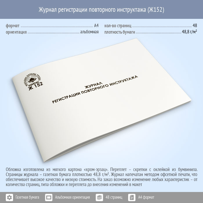Журнал регистрации повторного инструктажа (48 стр., Ж152) в Тюмени купить