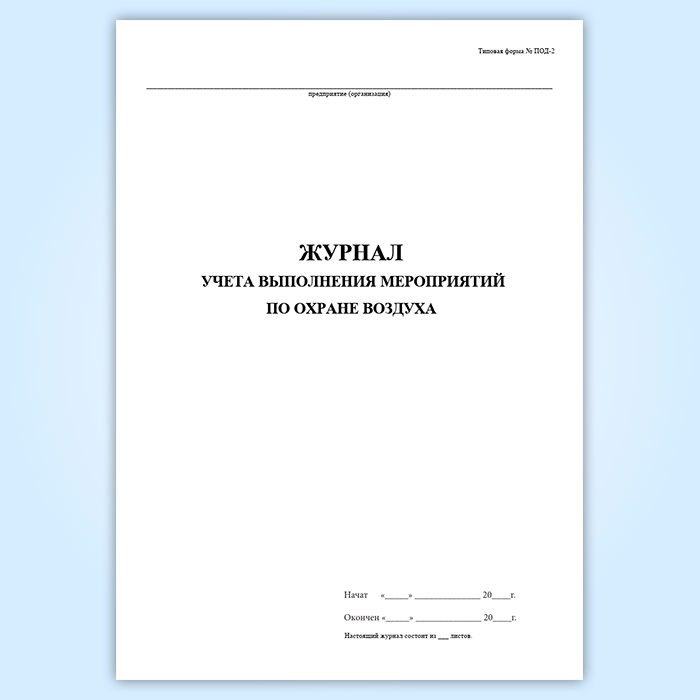 Журнал учета выполнения мероприятий по охране воздуха (форма ПОД-2) в Тюмени купить