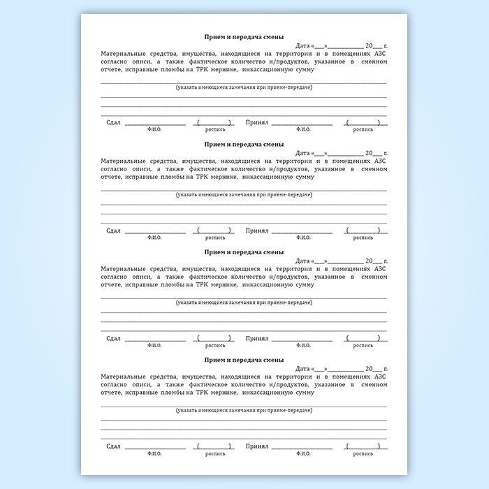 Журнал приема и передачи смен на АЗС в Тюмени купить