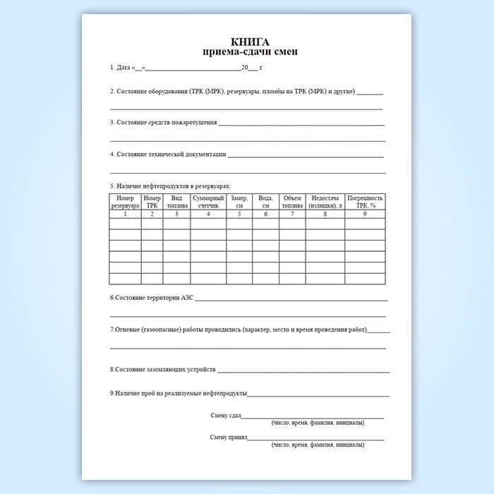 Книга приема-сдачи смен АЗС в Тюмени купить
