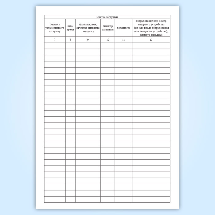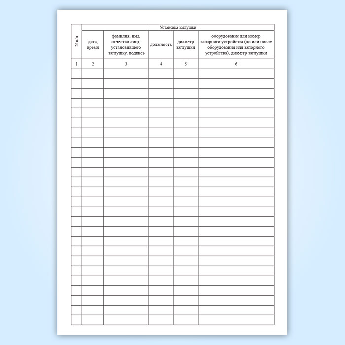 Журнал установки и снятия заглушек в Тюмени купить