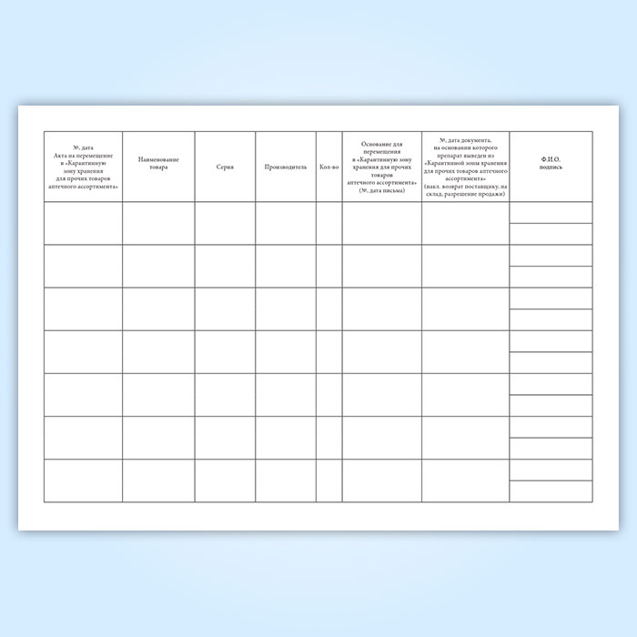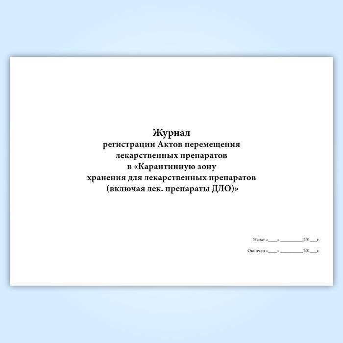 Журнал регистрации Актов перемещения лекарственных препаратов в «Карантинную зону хранения для лекарственных препаратов (включая лек. препараты ДЛО)» в Тюмени купить