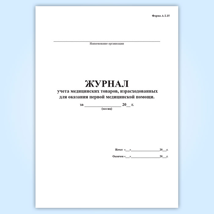 Журнал учета медицинских товаров, израсходованных для оказания первой медицинской помощи (форма А-2.15) в Тюмени купить