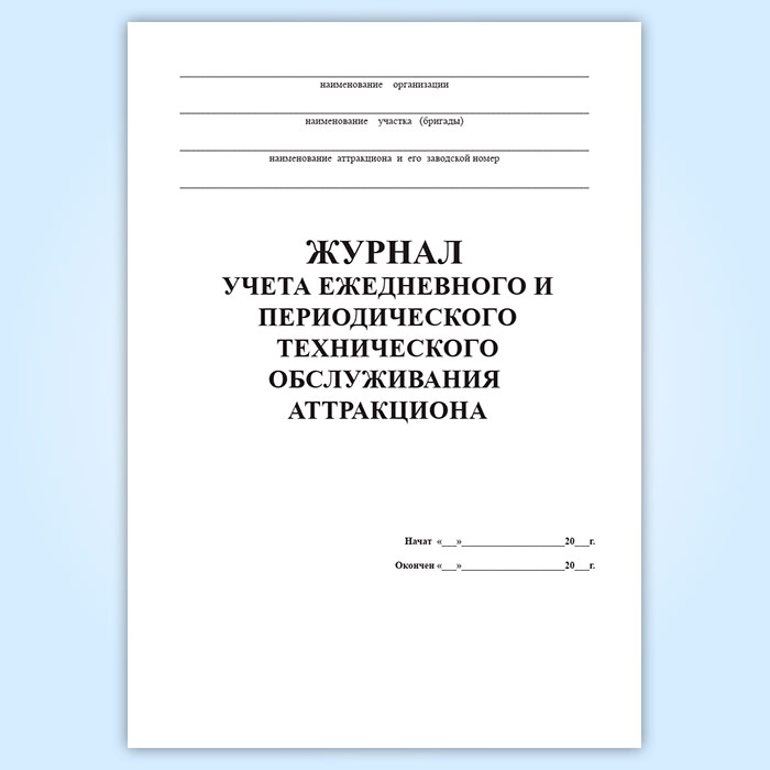 Журнал учета ежедневного и периодического технического обслуживания аттракциона в Тюмени купить