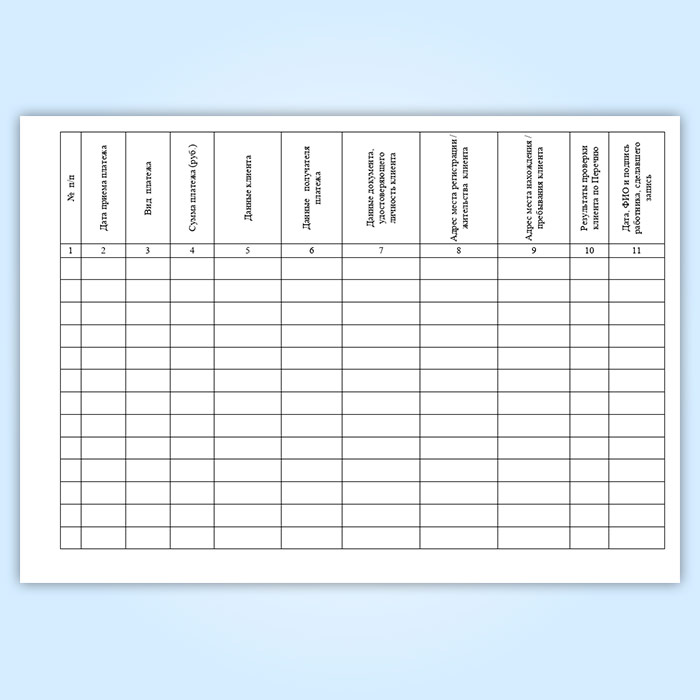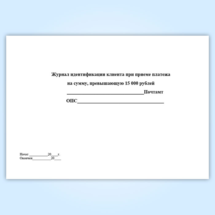 Журнал идентификации клиента при приеме платежа на сумму, превышающую 15 000 рублей в Тюмени купить