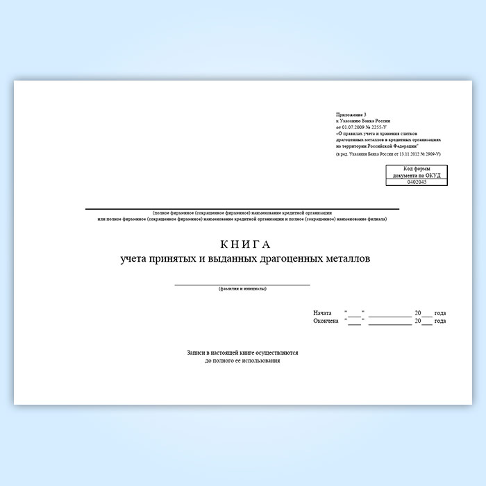 Книга учета принятых и выданных драгоценных металлов в Тюмени купить