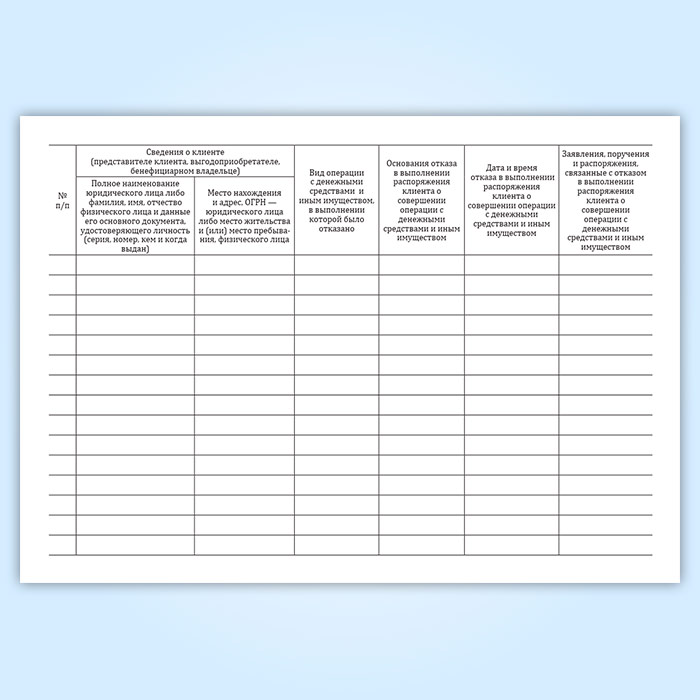 Журнал учета отказов в выполнении распоряжения клиентов о совершении операции с денежными средствами и иным имуществом в Тюмени купить