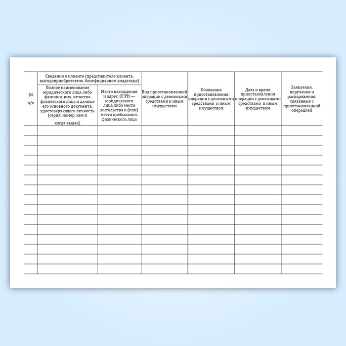 Журнал учета приостановленных операций с денежными средствами и иным имуществом клиента в Тюмени купить