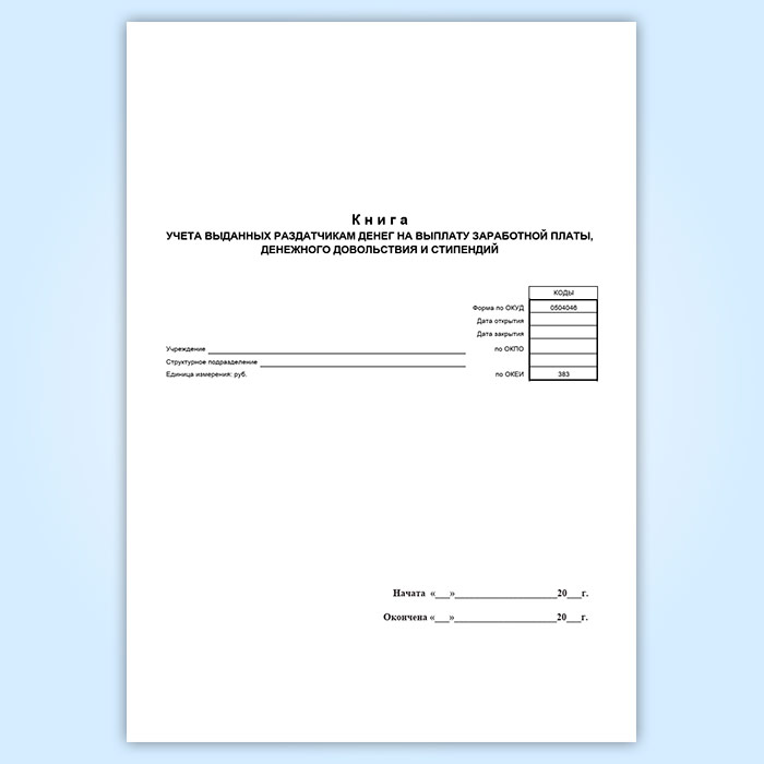 Книга учета выданных раздатчикам денег на выплату заработной платы, денежного довольствия и стипендий (форма по ОКУД 0504046) в Тюмени купить