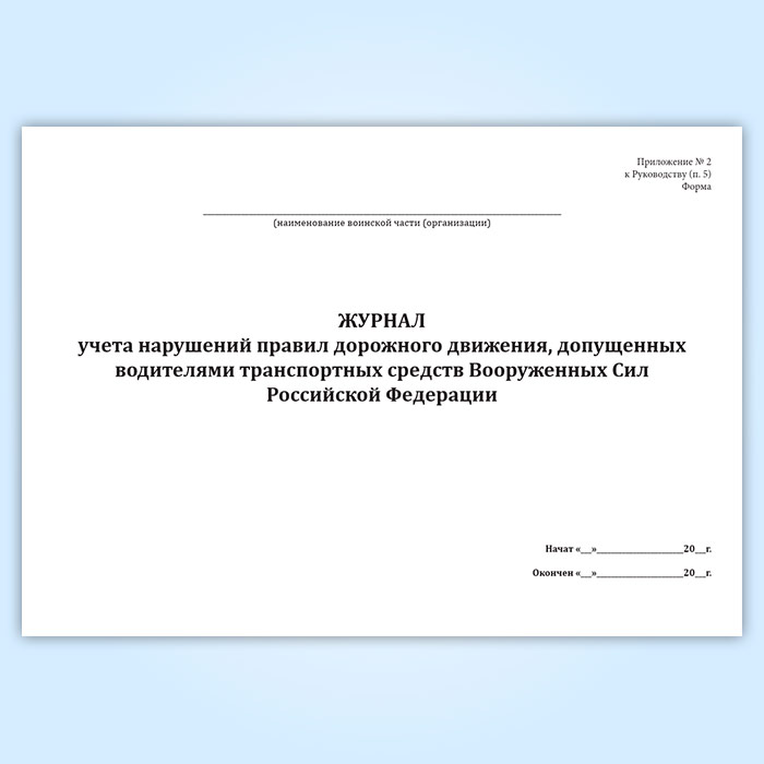 Журнал учета нарушений правил дорожного движения, допущенных водителями транспортных средств Вооруженных Сил Российской Федерации в Тюмени купить