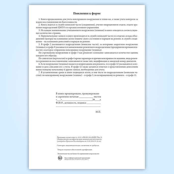 Книга учета неисправного вооружения и военной техники (форма 19) в Тюмени купить
