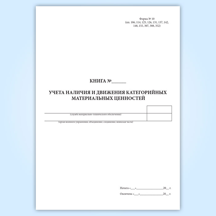 Книга учета наличия и движения категорийных материальных ценностей (форма 10) в Тюмени купить