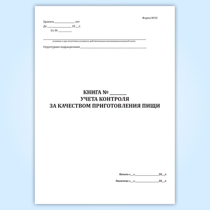 Книга учета контроля за качеством приготовления пищи (форма 33) в Тюмени купить