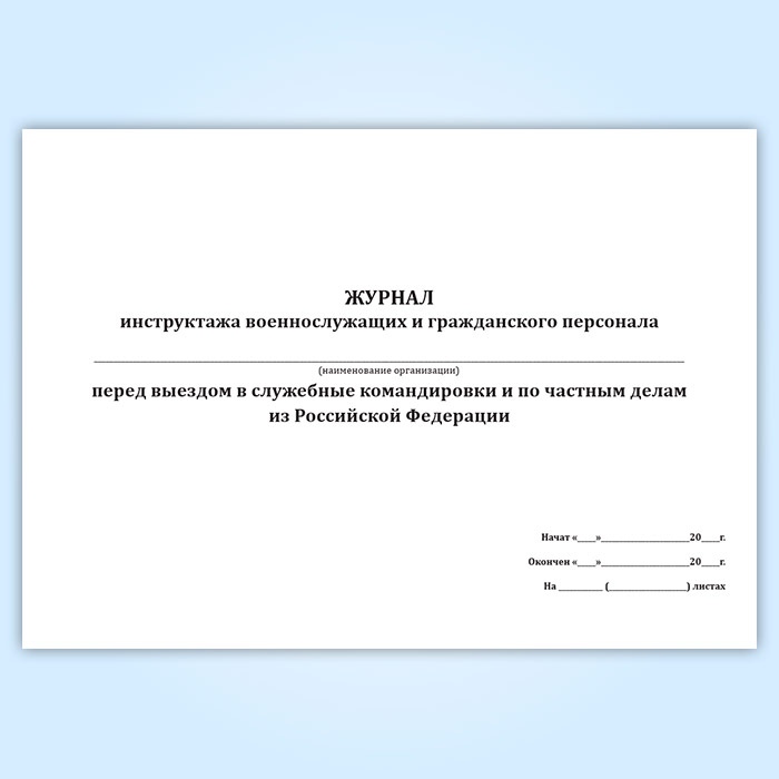 Журнал инструктажа военнослужащих и гражданского персонала перед выездом в служебные командировки и по частным делам из Российской Федерации в Тюмени купить
