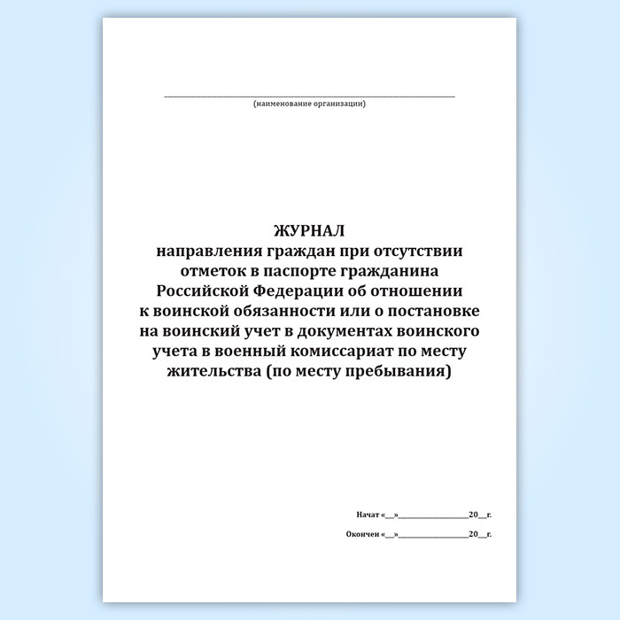 Журнал направления граждан при отсутствии отметок в паспорте гражданина Российской Федерации об отношении к воинской обязанности или о постановке на воинский учет в документах воинского учета в военный комиссариат по месту жительства (по месту пребывания) в Тюмени купить