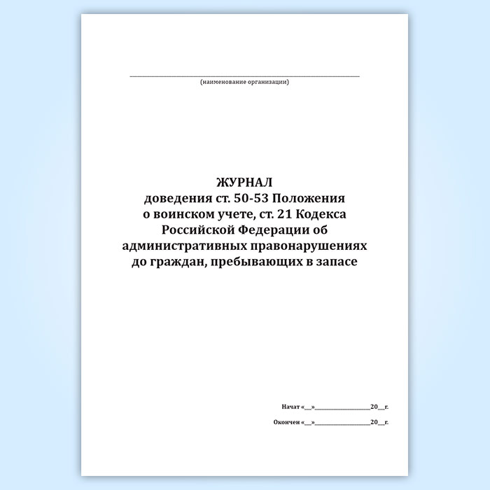 Журнал доведения ст. 50-53 Положения о воинском учете, ст. 21 Кодекса Российской Федерации об административных правонарушениях до граждан, пребывающих в запасе в Тюмени купить