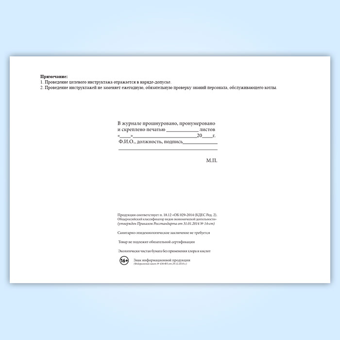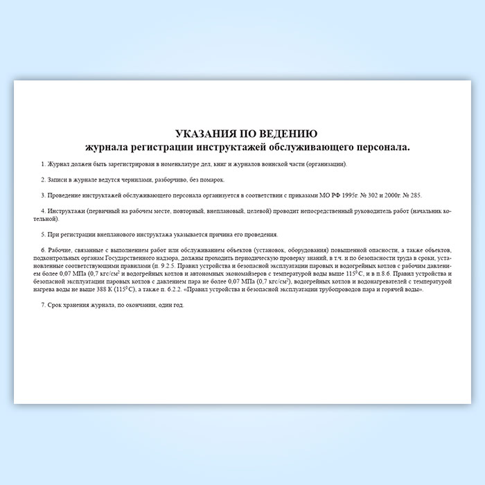 Журнал регистрации инструктажей обслуживающего персонала котельной (для воинских частей, предприятий и организаций) в Тюмени купить