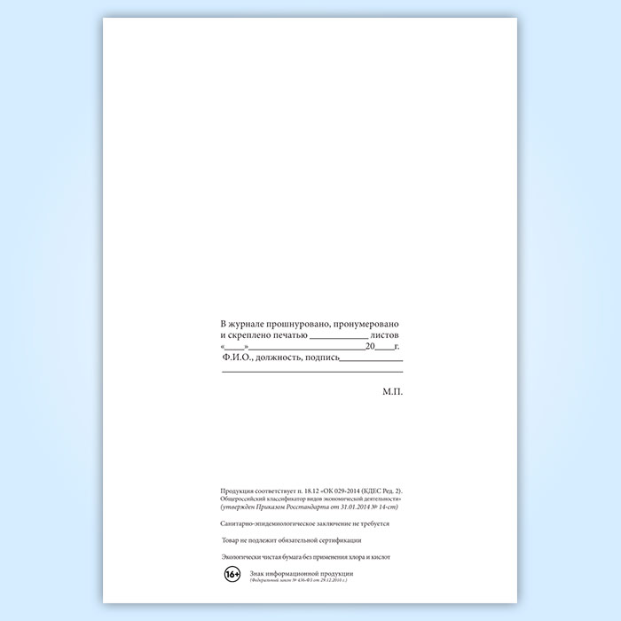 Вы получаете печатную продукцию прошнурованной и c местом для вашей печати в соответствии с действующими нормативными документами: