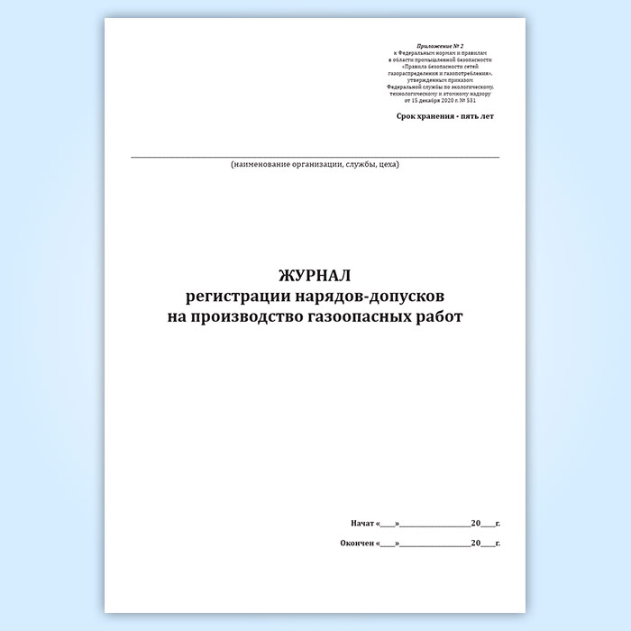 Журнал регистрации нарядов-допусков на производство газоопасных работ в Тюмени купить