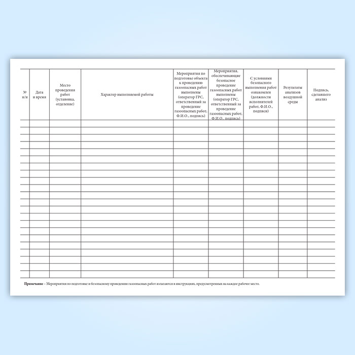 Журнал учета газоопасных работ, проводимых без наряда-допуска в Тюмени купить