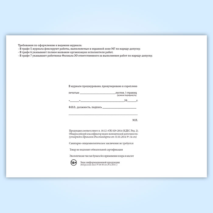 Журнал учета работ, выполняемых на линейной части магистрального газопровода в Тюмени купить
