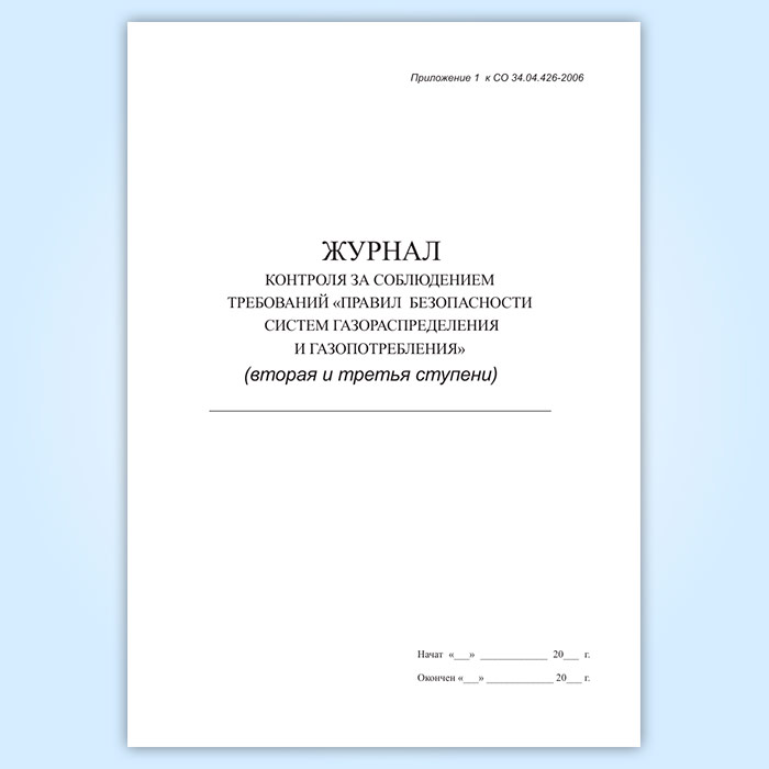 Журнал контроля за соблюдением требований Правил безопасности систем газораспределения и газопотребления (вторая и третья ступени) в Тюмени купить
