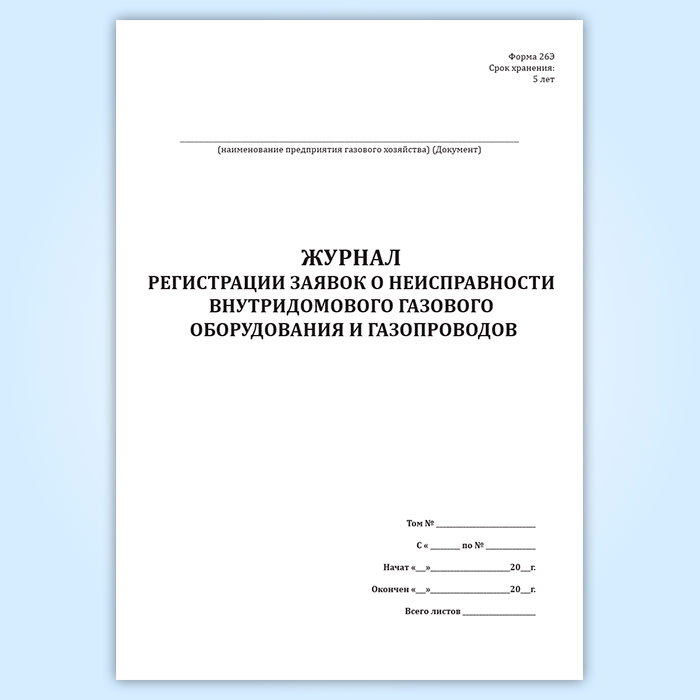 Журнал регистрации заявок о неисправности внутридомового газового оборудования и газопроводов (форма 26-Э) в Тюмени купить