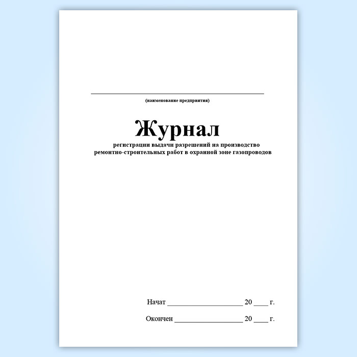 Журнал регистрации выдачи разрешений на производство ремонтно-строительных работ в охранной зоне газопроводов (ГЭГ-14) в Тюмени купить