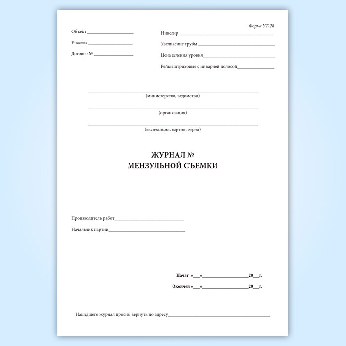 Журнал мензуальной съемки (форма УТ-28) в Тюмени купить
