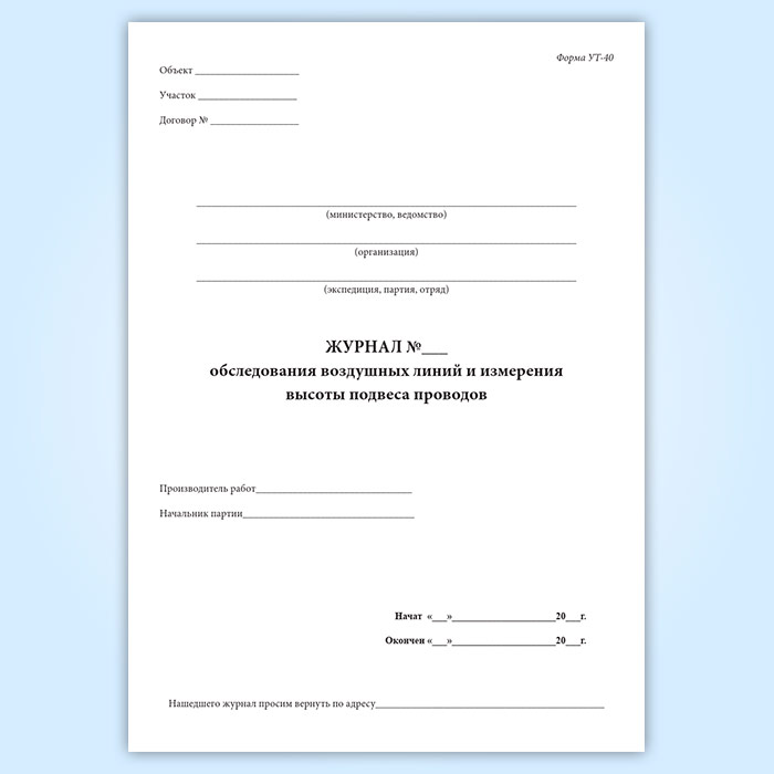 Журнал обследования воздушных линий и высоты подвеса проводов (форма УТ-40) в Тюмени купить