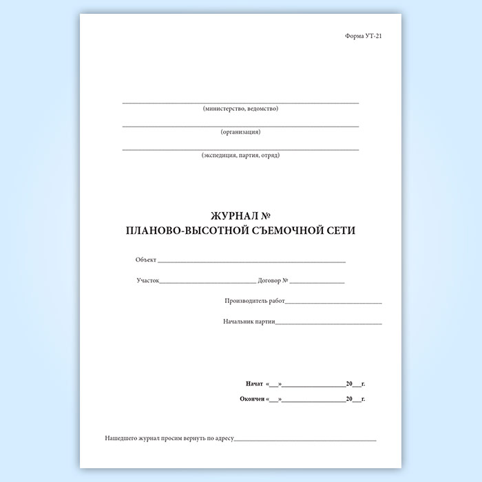 Журнал планово-высотной съемочной сети (форма УТ-21) в Тюмени купить