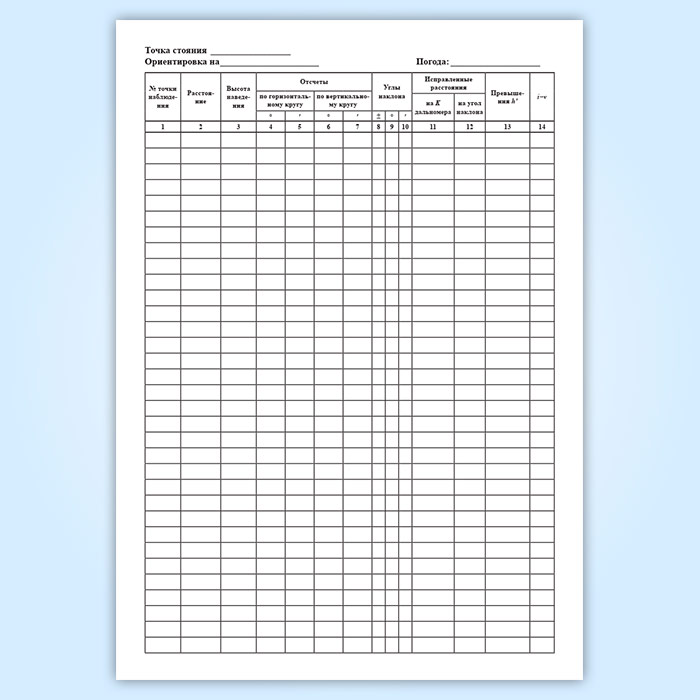 Полевой журнал тахеометрической съемки в Тюмени купить