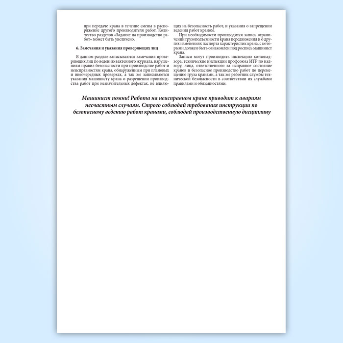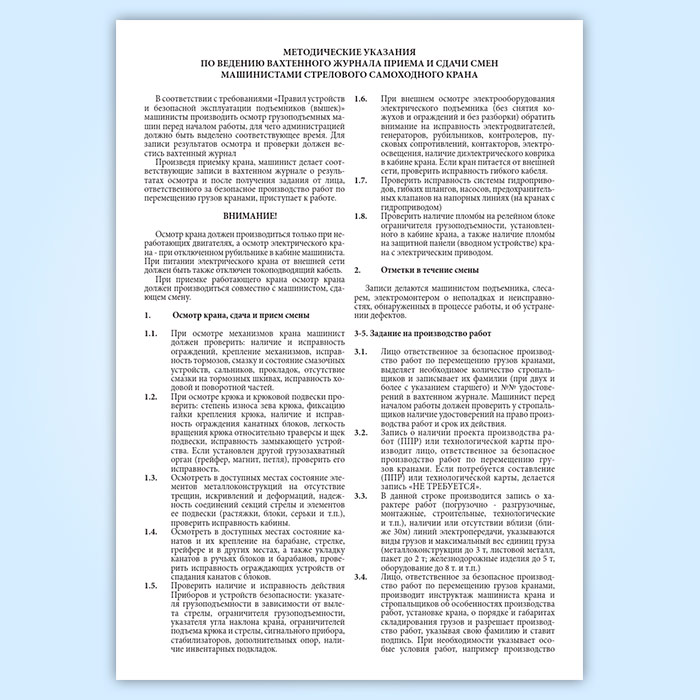 Вахтенный журнал приема-сдачи смен машинистами крана в Тюмени купить