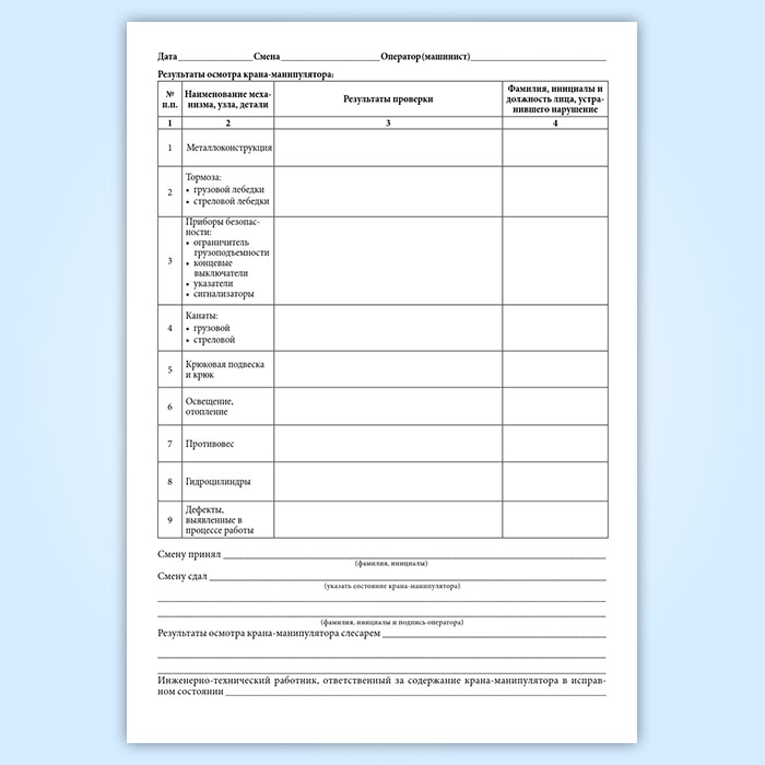 Вахтенный журнал приема-сдачи смен машинистами крана-манипулятора в Тюмени купить