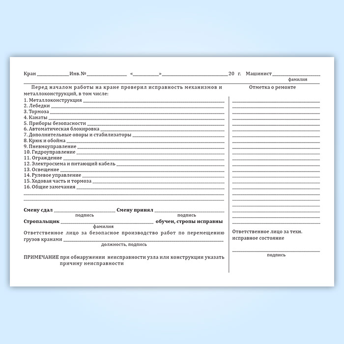 Вахтенный журнал г/п крана в Тюмени купить