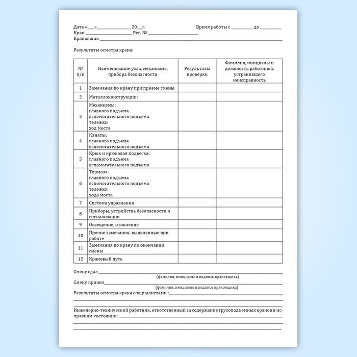 Вахтенный журнал машиниста мостового крана в Тюмени купить