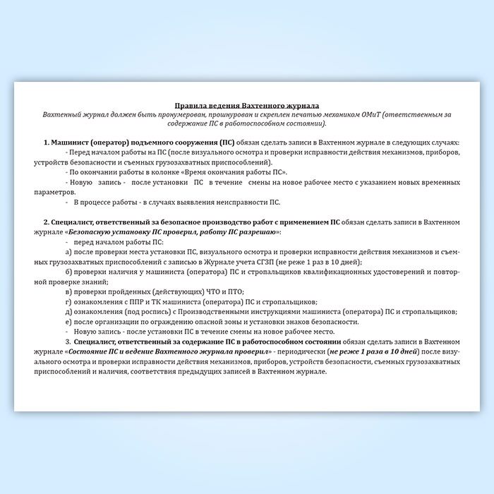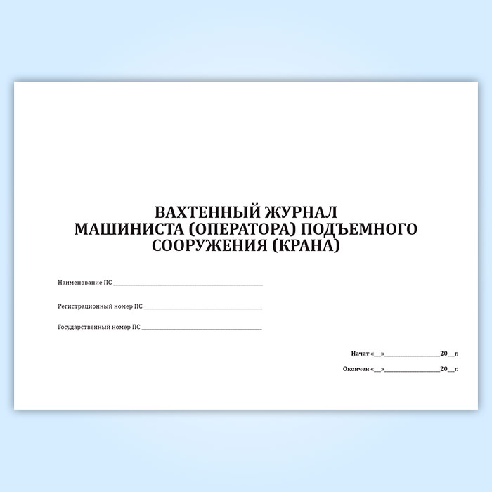 Вахтенный журнал машиниста (оператора) подъемного сооружения (крана) в Тюмени купить